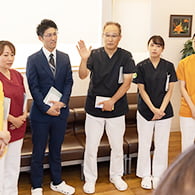 ![]()  朝礼スタッフ全員で朝礼を行います。患者様の引継ぎや情報共有、各職種からの連絡事項などを行うことで、今日1日の診療がより一層スムーズにすすめられるようになります。