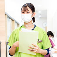 ![]()  出勤出勤し、制服に着替えたら1日がスタートします!今日のスケジュールを見ながら、患者様のカルテや仕事内容を確認します。